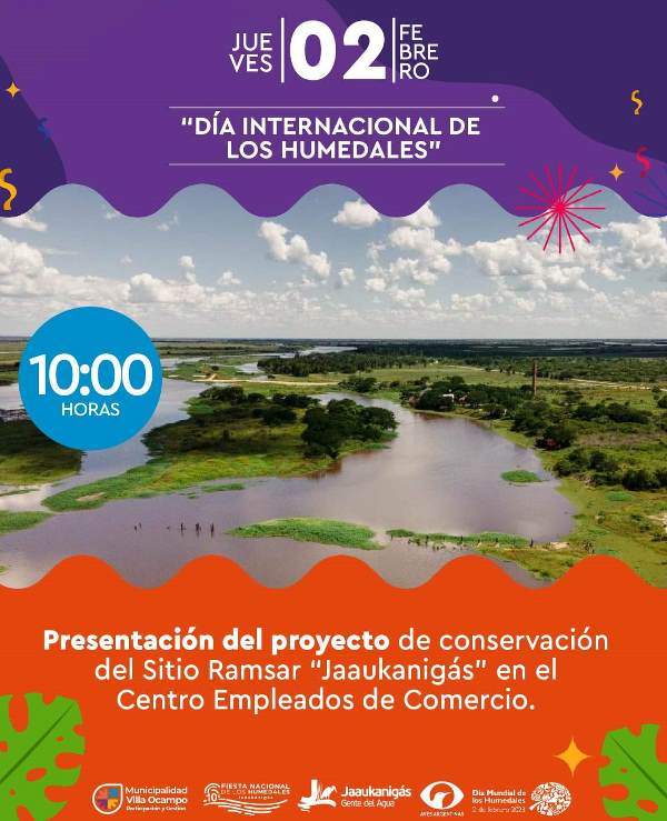 En el marco de la 10º Fiesta Nacional de los Humedales “Jaaukanigás” que tiene como sede natural a nuestra ciudad, se llevará a cabo este jueves 2 de febrero, a las 10:00 Hs. en el local del Centro de Empleados de Comercio, una conferencia sobre el “Día Internacional de los Humedales”.