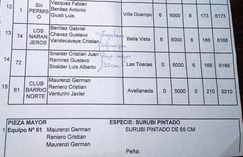 Villa Ocampo: La pesca y su fiesta. Los ganadores