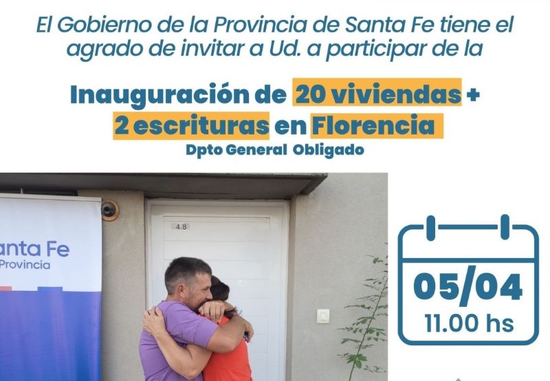 La Municipalidad de Florencia informa que la entrega de 20 viviendas sociales del barrio Santa Rosa, será este 5 de abril a las 11 de la mañana.