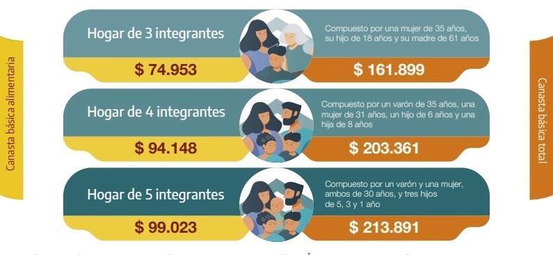 Por otro lado, para no ser indigente una familia necesitó $94.148 y una persona adulta, $30.469.