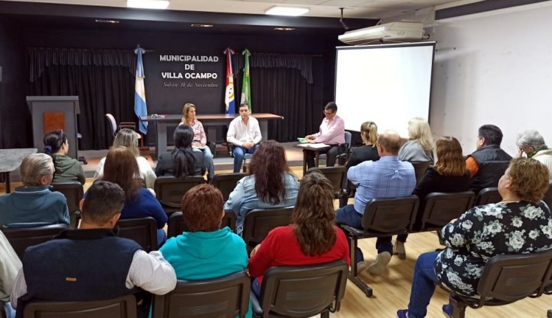 Los secretarios de Hacienda y Finanzas, y de Cultura y Comunicación de la Municipalidad de Villa Ocampo, Gabriela Yaccuzzi y Guillermo Scarpín, participaron de la reunión donde se renovó la Comisión del FAE 2023 (Fondo de Asistencia Educativa).