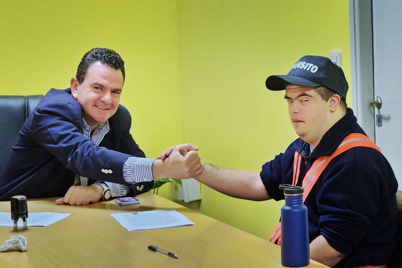 Baltazar Adolfo Bordón, el joven con Síndrome de Down que en el mes de noviembre pasado se incorporó al equipo municipal de tránsito, suscribió nuevamente el convenio que lleva adelante el proyecto de integración social.