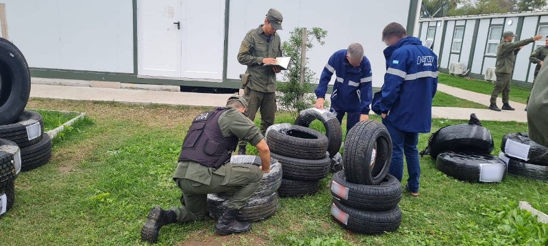 Al realizar la inspección de la carga, los gendarmes constataron la presencia de 128 neumáticos de diferentes rodados y marcas, de industria extranjera, que eran transportados en presunta infracción a la Ley 22.415, dado que el propietario no contaba con el correspondiente aval aduanero.