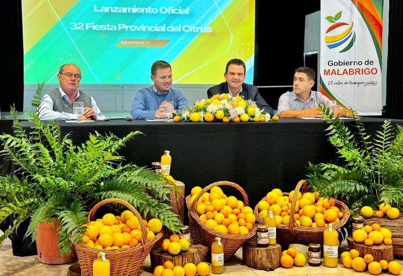 Roberto Spontón, intendente de la ciudad, acompañado por el integrante del Centro Comercial e Industrial, Jorge Ovidio Soto; por el gerente de la Cooperativa Agropecuaria de Malabrigo, Gabriel Zampar y en representación de los citricultores, Óscar Catarozzi, presentaron oficialmente una nueva edición de la Fiesta Provincial del Citrus.