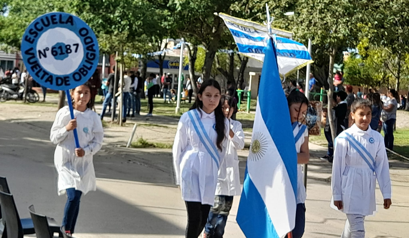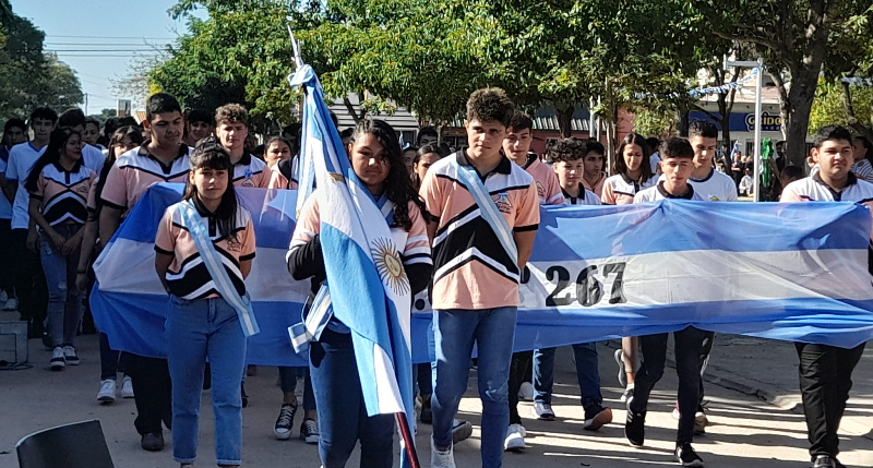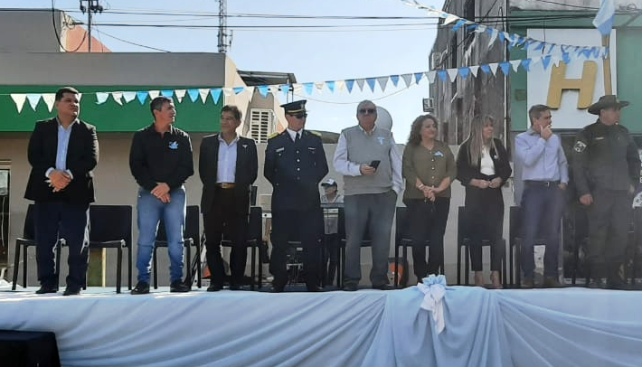 El acto estuvo presidido por el intendente Ruben Carlos Quain, funcionarios municipales, representantes de instituciones y concejales de la ciudad. Este año se volvió a realizar el tradicional desfile de instituciones, lo que convocó a cientos de vecinos.