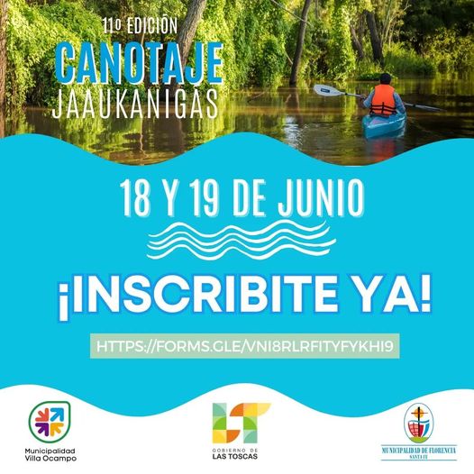 Se invita a participar del 11º Canotaje del Jaaukanigás, a realizarse este domingo 18 y lunes 19 de junio, organizado en forma conjunta entre los municipios de Villa Ocampo, Las Toscas y Florencia.