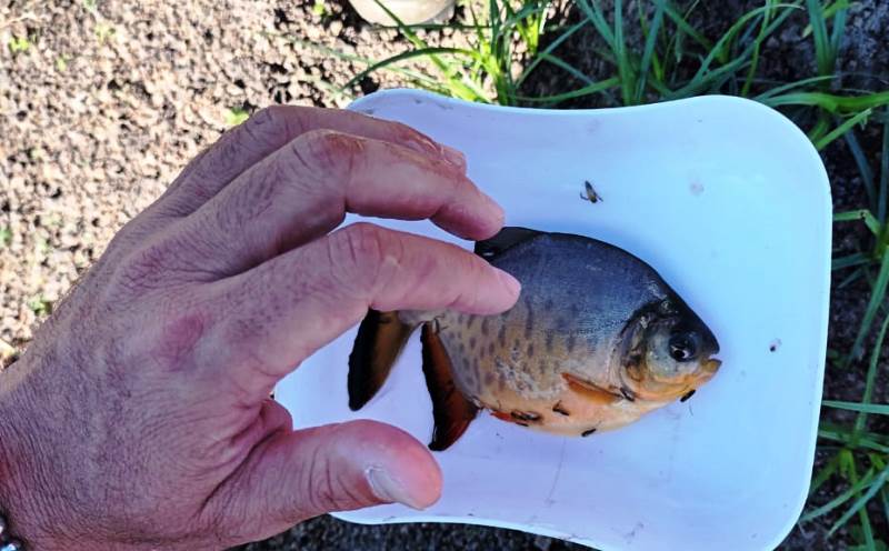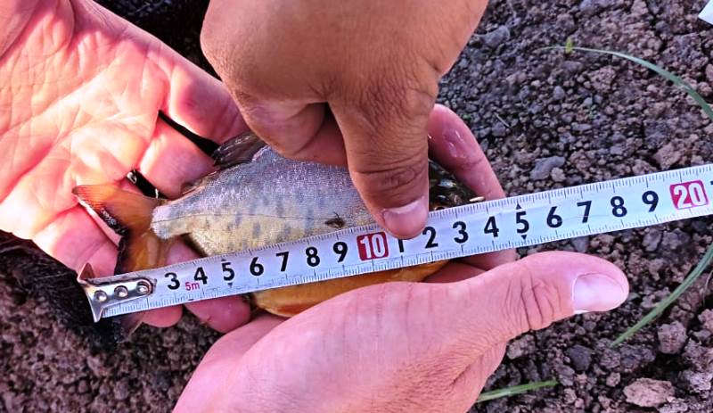 «Realizamos la asistencia técnica, que consiste en la medición, pesajes de alevines de Pacú y temperatura del agua del estanque, con el objetivo de adaptar las especies», comentó el secretario de producción.