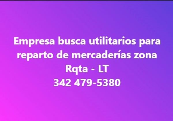 Se busca utilitarios para reparto de mercaderías en las zonas de Reconquista, Vera y Las Toscas.