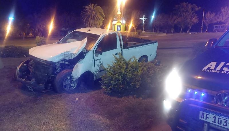 Una camioneta sufrió un accidente en pleno acceso a la ciudad de Villa Ocampo, perdiendo el control e impactando la columna de alumbrado público del cantero central.