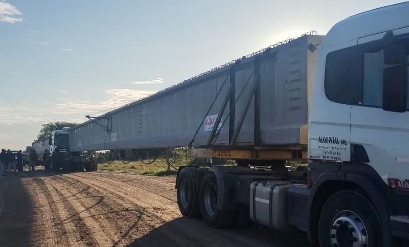 En el día de este miércoles 28 de junio, llegaron dos vigas pretensadas, de 32 mts de largo, para la continuidad de la construcción del puente sobre el Paraná Miní en Villa Ocampo.