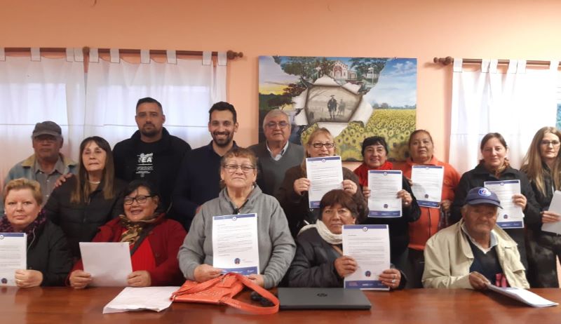 El intendente Ruben Carlos Quain, acompañado del titular de Anses Favio Martínez, de la concejal Ana María Ansermet y de uno de los referentes a nivel local de Anses Walter Vallejos, realizaron la entrega de las resoluciones de las primeras 15 jubilaciones que permiten que los adultos mayores puedan jubilarse, sin tener aporte.