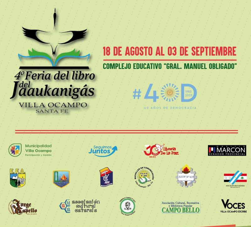 Del 18 de agosto al 3 de septiembre, Villa Ocampo será sede de la 4º Feria del Libro del Jaaukanigás, el mega evento que durante 17 días consecutivos convierte a nuestra ciudad en el epicentro de la actividad cultural y educativa del norte santafesino.