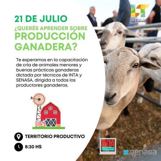 Desde el gobierno de la ciudad de Las Toscas, invitan para este viernes 21 de julio, junto a INTA y SENASA a todos los productores ganaderos a participar de una capacitación en el Territorio Productivo.