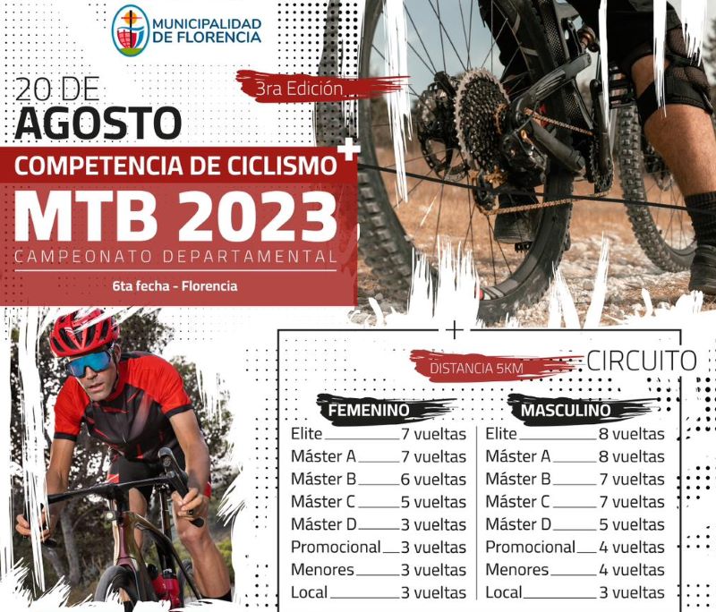 Este domingo 20 de agosto se concretará la 6ta fecha del Campeonato Departamental MTB 2023 en Florencia.