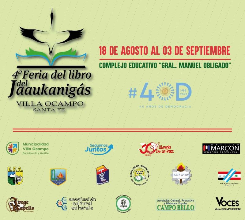 Desde la organización de la 4ª Feria del Libro del Jaaukanigás informan el programa para este lunes 28 de agosto de 2023.
