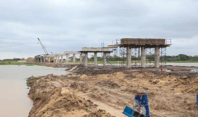 El gobernador de la provincia de Santa Fe, Omar Perotti, recorrió este viernes las obras del puente sobre el Arroyo Paraná Miní y accesos en Villa Ocampo. Con un presupuesto oficial de $ 3.900.000.000, la obra ya presenta un 60% de avance.