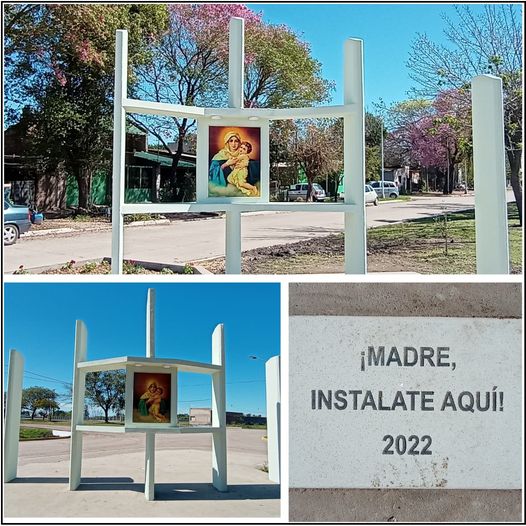 En Villa Ocampo se instaló la Imagen de la Virgen Peregrina de SCHOENSTATT, en uno de los principales accesos de la Ciudad, que es la rotonda de los Inmigrantes.