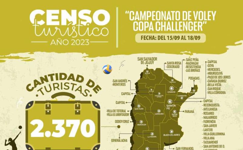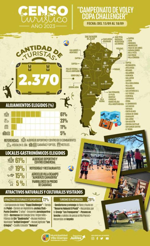La Secretaría de Sistemas Productivos y Medio Ambiente de la Municipalidad de Villa Ocampo informa que se llevó a cabo un nuevo censo turístico el pasado fin de semana, durante el desarrollo en esta ciudad de la Copa Challenger de Vóley.