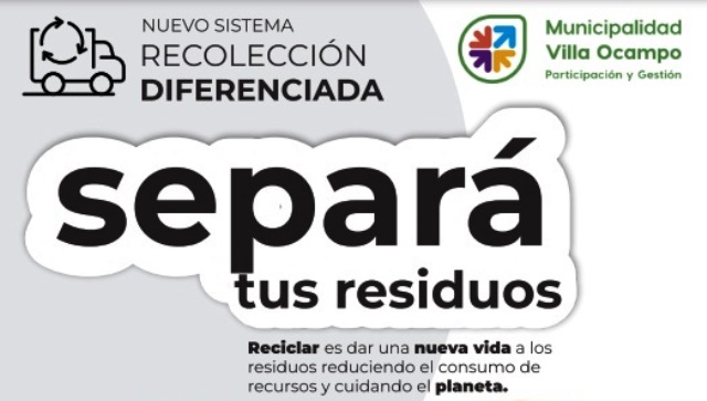 La Secretaría de Servicios Públicos de la Municipalidad de Villa Ocampo informa que debido al paro provincial de los empleados municipales dispuesto por 72 horas, no habrá recolección de residuos inorgánicos esta semana; por lo que se aconseja a los frentistas mantenerlos acopiados en sus domicilios hasta el próximo Miércoles Verde.