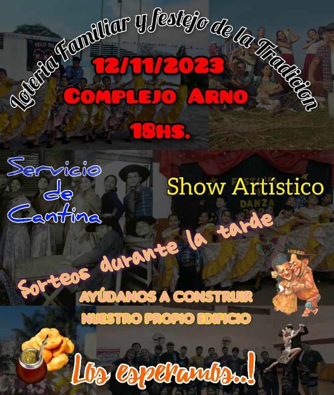 La Secretaría de Cultura y Comunicación de la Municipalidad de Villa Ocampo invita al Festejo de la Tradición y Lotería Familiar que organiza la Escuela Municipal de Danzas «Flor del Irupé» este domingo 12 de noviembre, a partir de las 18:00 Hs. en el Complejo Arno.