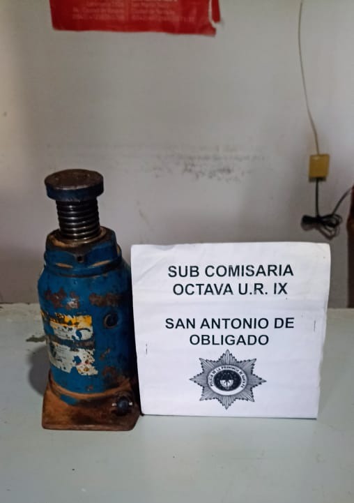 Fecha 19-11-23 – De diligencias llevadas a cabo por personal de esa se estableció que no sería ajeno al hecho Un hombre, mayor de edad, domiciliado en esa localidad. Se realizaron entrevistas a testigos y constituidos en un vivienda de ese medio propietaria hizo entrega de manera voluntaria de (01) gato hidráulico color azul.