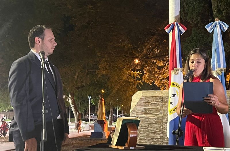 A 40 años de la democracia, se concretó en el Paseo de la Amistad (plaza Belgrano) de la ciudad de Villa Ocampo, el acto de juramento del intendente electo, Cristian Marega.