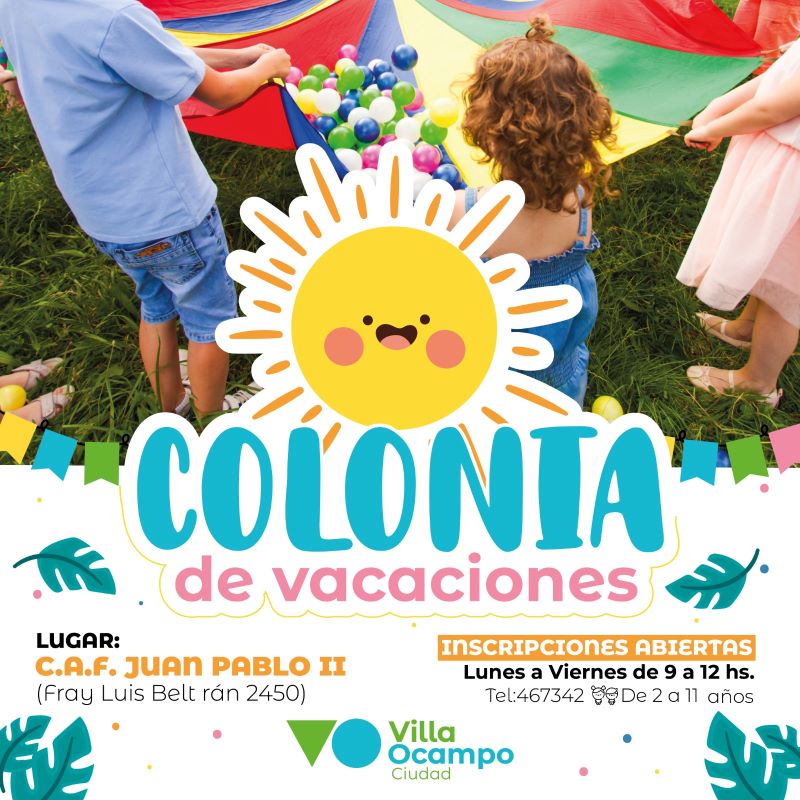 La Municipalidad de Villa Ocampo informa que se encuentran abiertas las inscripciones a la Colonia de Vacaciones en el Centro de Asistencia Familiar Juan Pablo II.