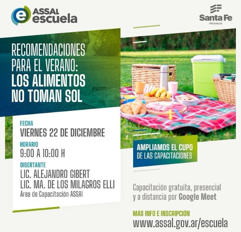 La Municipalidad de Villa Ocampo informa que la Agencia Santafesina de Seguridad Alimentaria (ASSAL) brinda la capacitación: «Recomendaciones para el Verano: Los alimentos no toman sol», basada en recomendaciones para manipulación doméstica de alimentos.