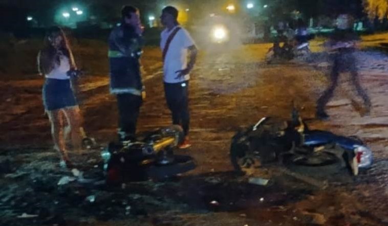 Impactan con una motocicleta Gilera 110 CC color negra y azul, dominio A124XWL, conducida por Julián Alexis Sandoval, de 20 años de edad, domiciliado en calle San Lorenzo Bº Los Amores de Villa Ocampo e iba acompañado por Gustavo Daniel López, de 40 años de edad, domiciliado en calle Santa Fe, Barrio Juan Perón, los mismos circulaban en sentido SUR-NORTE.