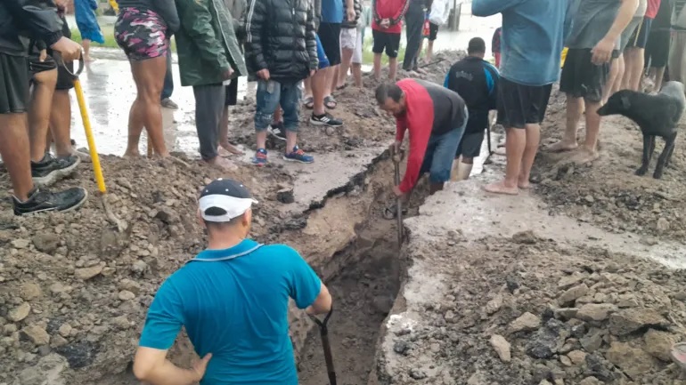 En la tarde del miércoles 10 de enero del 2024, un grupo de vecinos inundados decidieron romper el pavimento de la Ruta Provincial N° 40, a la altura del Barrio Nuevo de Reconquista, para que el agua estancada en sus casas pueda fluir hacia el Norte.