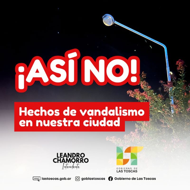 «Desde la Municipalidad repudiamos estas acciones que no hacen más que atentar contra el aporte de cada vecino contribuyente. No podemos tolerar que mientras todos estemos esforzándonos por mejorar, reparar y mantener las instalaciones públicas, haya desaprensivos que cometan estos actos que ensombrecen cualquier mejora que se realiza en las calles o instalaciones municipales», expresaron.