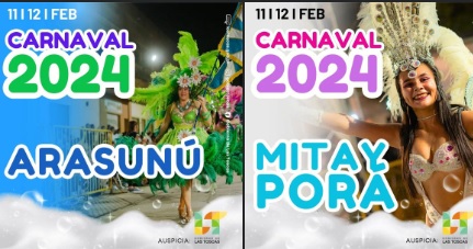 Este 11 y 12 de febrero, el gobierno de la ciudad de Las Toscas te esperapara disfrutar del carnaval, junto a las comparsas ARASUNÚ y MITAY PORÁ, que llenará las calles con su deslumbrante desfile, mostrando sus hermosos trajes y contagiándonos con su energía única.