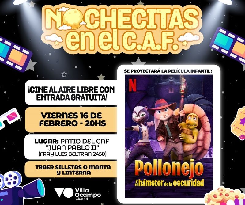 El Centro de Acción Familiar (CAF) Juan Pablo II junto a la Secretaría de Cultura y Comunicación invitan a la ciudadanía a compartir una noche en familia, este viernes 16 de febrero a partir de las 20 hs. en el patio del CAF (Fray Luis Beltrán 2450).