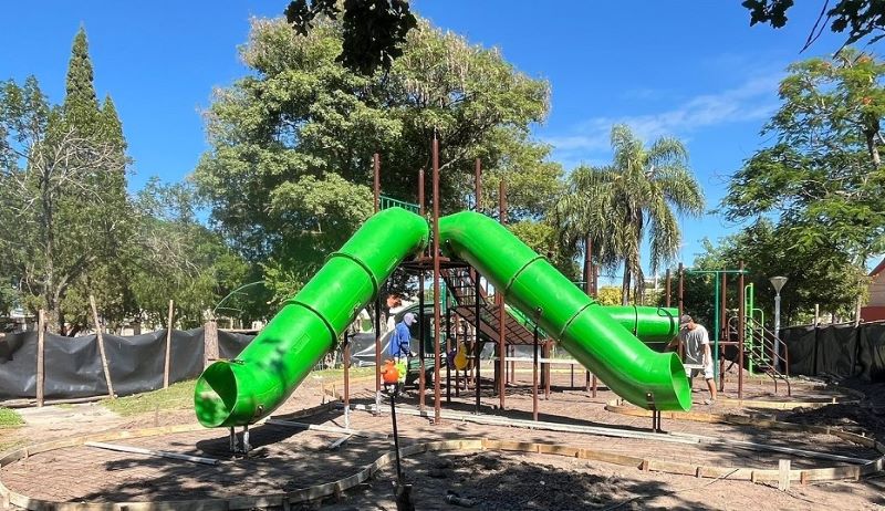 Villa Ocampo: Avanza la obra de lo juegos nuevos en plaza Belgrano