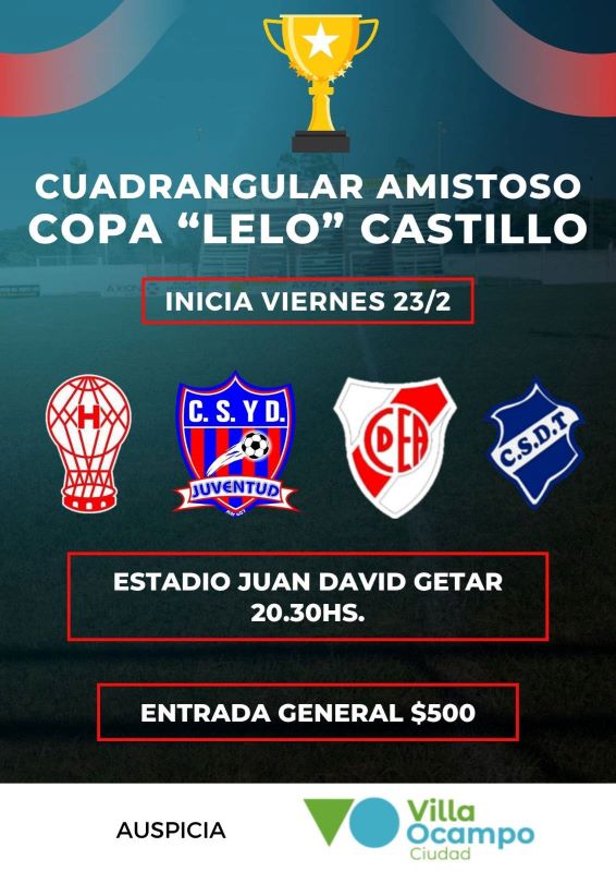 Desde este viernes, el Club Huracán de Villa Ocampo, con el auspicio de la municipalidad, en el Juan David Getar, se llevará a cabo un cuadrangular, denominado Copa «Lelo» Castillo.
