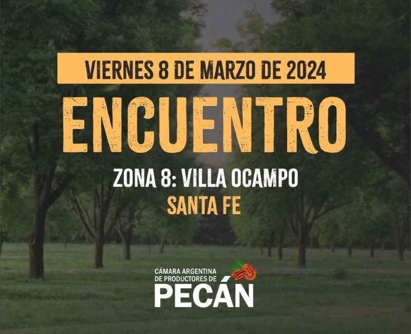 La Municipalidad de Villa Ocampo invita a productores o interesados a participar del Encuentro Zona 8: Villa Ocampo de la Cámara Argentina de Productores de Pecán.