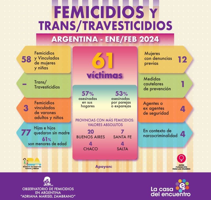El 57% fue asesinada en su propio hogar. Además, más del 53% de los agresores fueron parejas o exparejas.