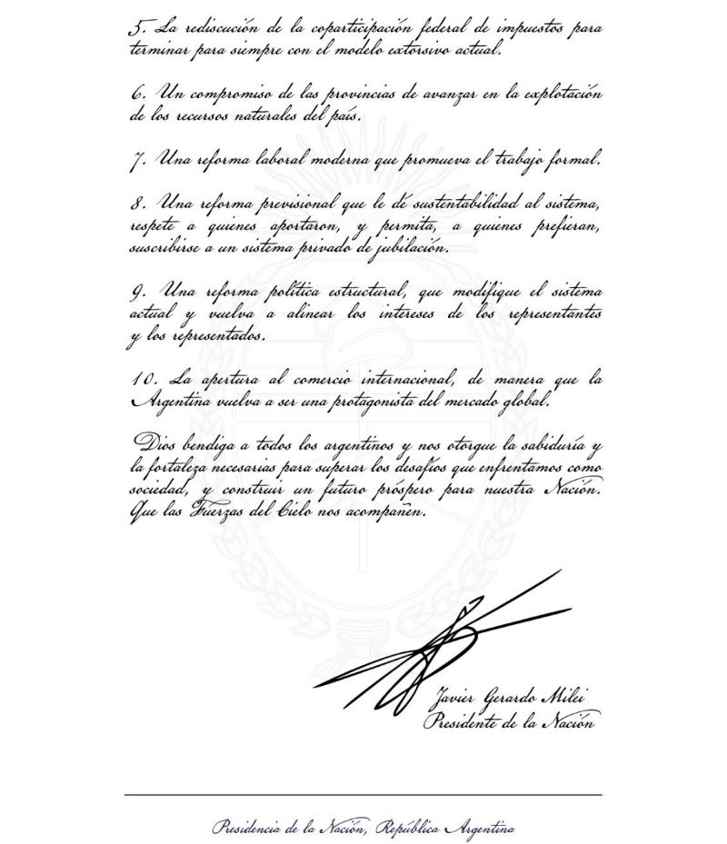 «Pacto de Mayo»: Los 10 Ejes de la propuesta de Milei