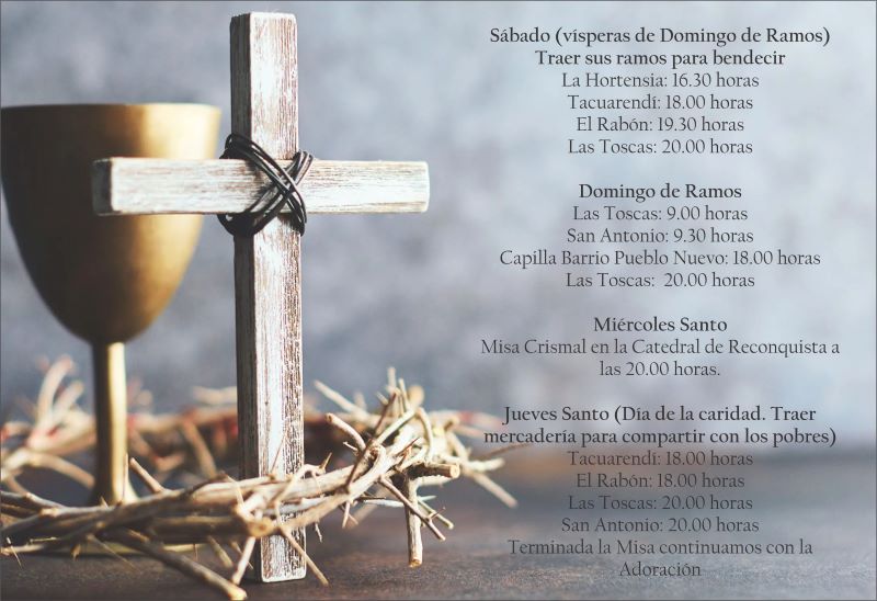A partir del 1 de abril, la Misa de todos los días será a las 19.00 horas y la de los domingos a la mañana a las 10.00 horas.