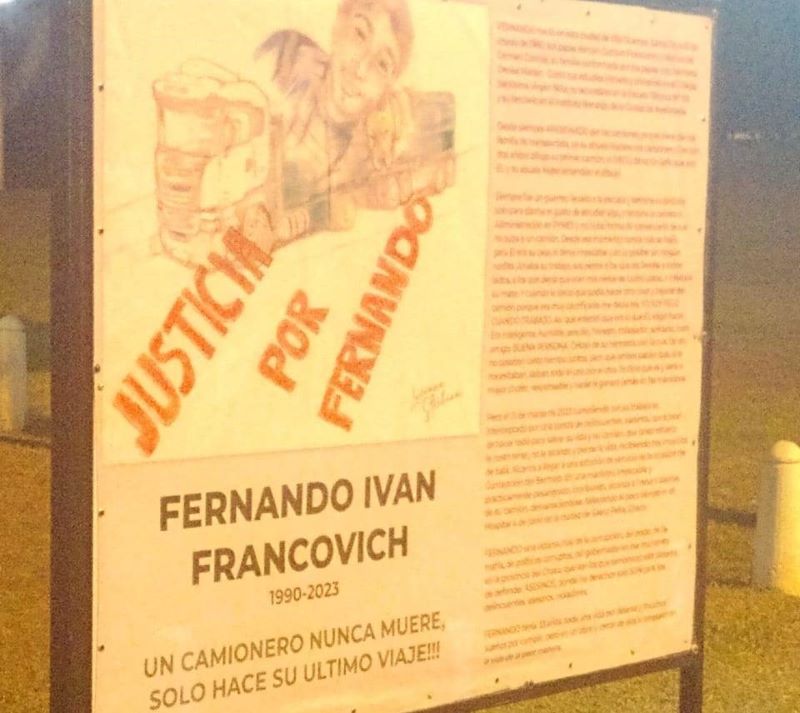 “A un año de aquella fatídica jornada del 21 de marzo de 2023, estamos aquí para conmemorar, recordar y continuar pidiendo justicia por mi hijo Fernando Iván Francovich, que fue asesinado por una banda de delincuentes en la provincia del Chaco, en la ruta nacional número 16, altura de Aviá Terai”, comenzó Mónica Corgniali, madre del camionero asesinado.