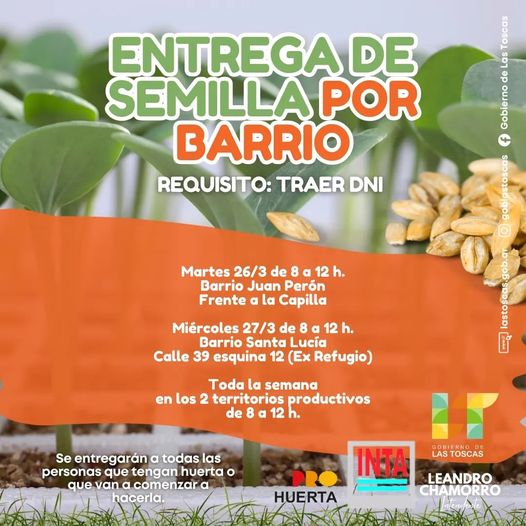 El gobierno de la ciudad de Las Toscas informa sobre la entrega de semillas pro huerta para la temporada otoño-invierno 2024.