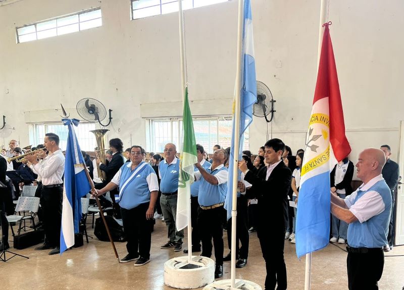 En primer lugar y luego del ingreso de las banderas de ceremonia, vino las estrofas del himno nacional argentino, para luego el Padre Rolando elevar una plegaria por todos aquellos compatriotas que ofrendaron su vida por nuestras tierra austral, por sus familiares y por nuestra querida patria.