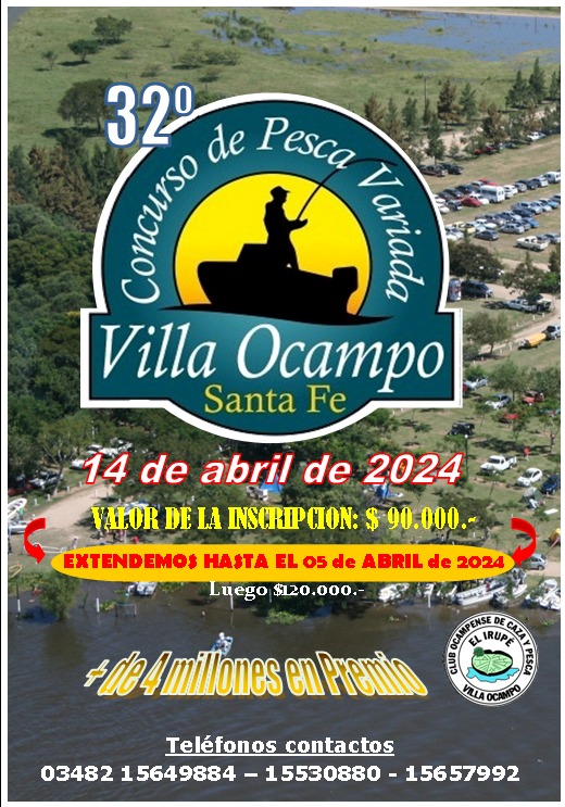 DestacadasTurismo Villa Ocampo: Este finde se realiza el 32° Concurso de pesca variada 11 abril, 2024 Compartir en Facebook Compartir en Twitter tweet Programa 32 concurso 2024