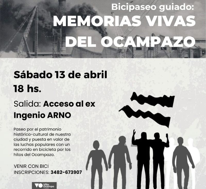 «Una iniciativa destinada a promover el conocimiento y la apreciación del patrimonio histórico-cultural de nuestra ciudad y a poner en valor las luchas populares con un recorrido en bicicleta por los hitos del Ocampazo», expresaron.