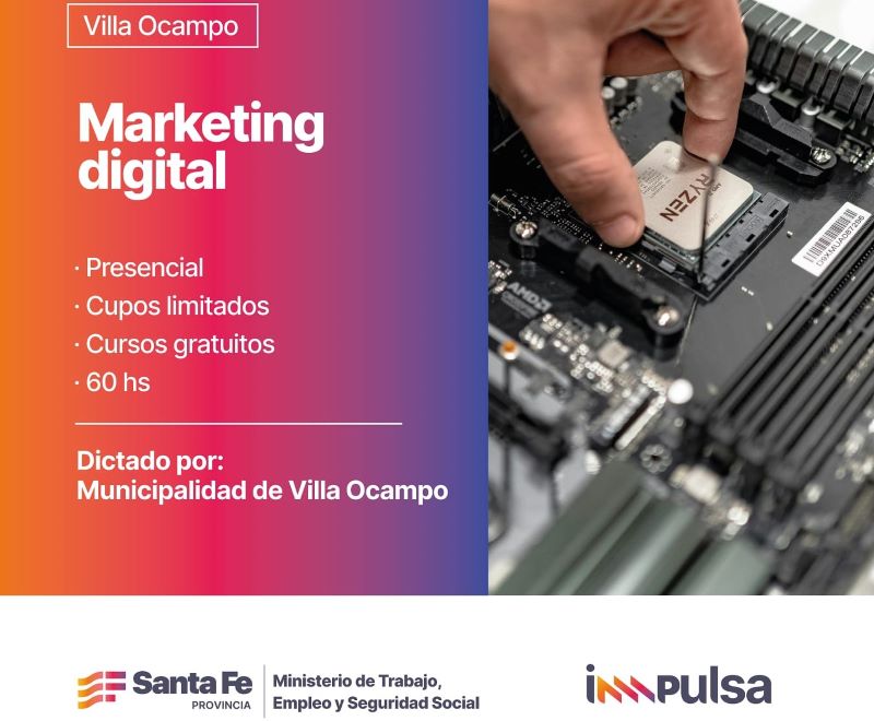 La Oficina de Empleo de la Municipalidad de Villa Ocampo informa a la comunidad que se encuentra abierta la inscripción para los cursos presenciales de Hacking Ético y Marketing Digital que se dictarán en el mes de mayo.