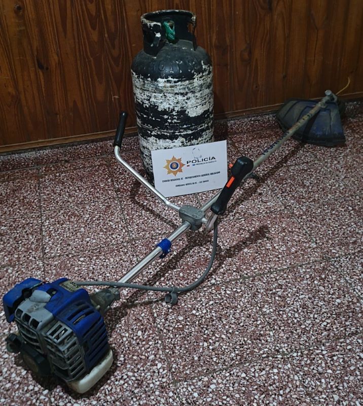 De tareas investigativas, se constituyeron en una finca ubicada en calle 53 entre 12 y 14, donde fueron atendidos por su propietario, el cual interiorizado, manifestó que momentos antes se hizo presente en su vivienda un amigo conocido, domiciliado en la ciudad de Villa Ocampo, quien le preguntó si podía dejar un rato las cosas que había comprado (una máquina de cortar pasto y una garrafa) ya que tenía que seguir haciendo unos trámites y después pasaba a buscar, desconociendo la procedencia de los elementos.