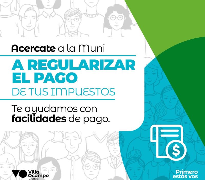 La Municipalidad de Villa Ocampo invita a todos los vecinos a acercarse al Palacio Municipal a regularizar el pago de sus impuestos municipales.