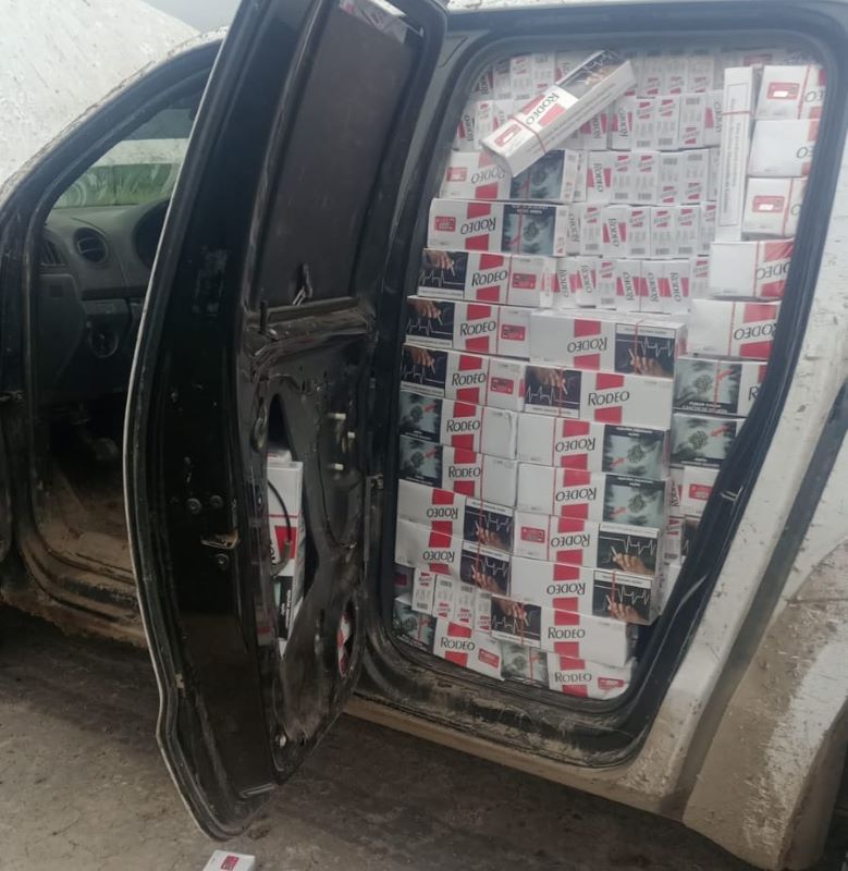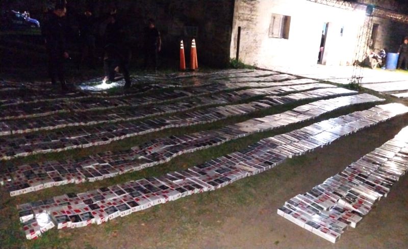 El chofer y su acompañante fueron aprehendidos y en el interior de la Volskwagen blanca se hallaron varios cartones de cigarrillos de contrabando.