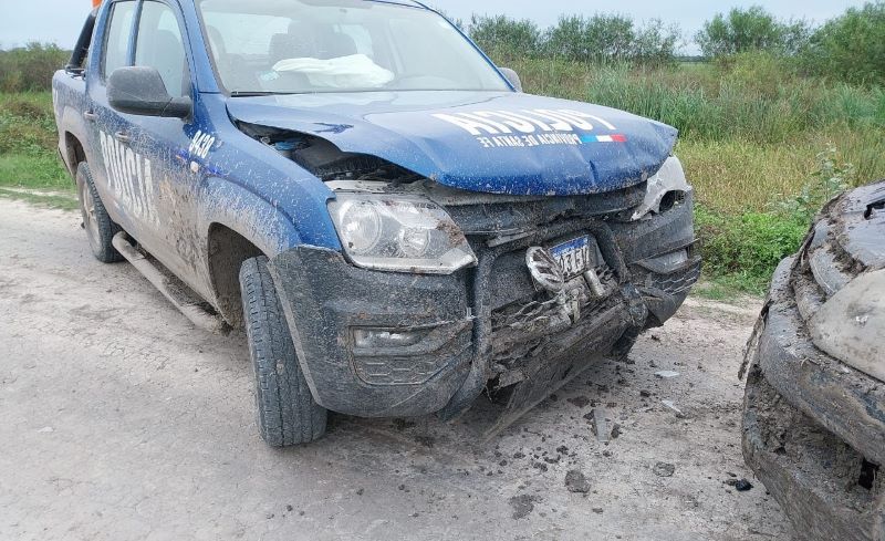 En tanto, los ocupantes de la segunda camioneta al ver el móvil policial que les cortaba el paso dieron la vuelta en sentido contrario al que circulaban colisionando en forma frontal con la unidad de Cañada Ombú, que los seguía.