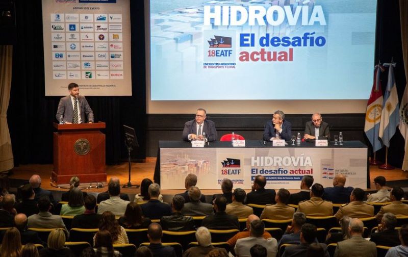 El gobernador Maximiliano Pullaro encabezó el pasado martes 30 de abril en Rosario la apertura del 18° Encuentro Argentino de Transporte Fluvial (EATF), que se congregó este año bajo el título “Hidrovía: El desafío actual”, organizado por el Instituto de Desarrollo Regional Rosario. En la oportunidad, se incluyó a Puerto Ocampo entre los proyectos de inversión que el Gobierno Provincial tiene previsto en esta materia.